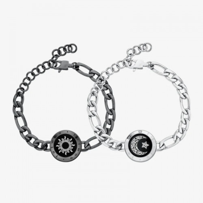 الفكرة الرئيسية: تهتز وتضيءبلمس. عندما تفتقدما بعضكما البعض حتى لو كان على بعد أميال بلمسة سوف تهتز وتضيئ اسوارة حبيبك